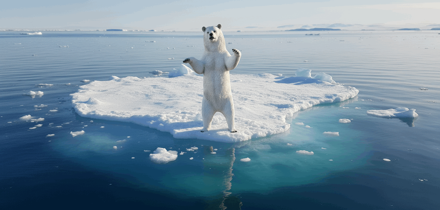 Isbjørn som står oppreist. Isbjørnen har høyde på 250 cm og er et imponerende blikkfang.